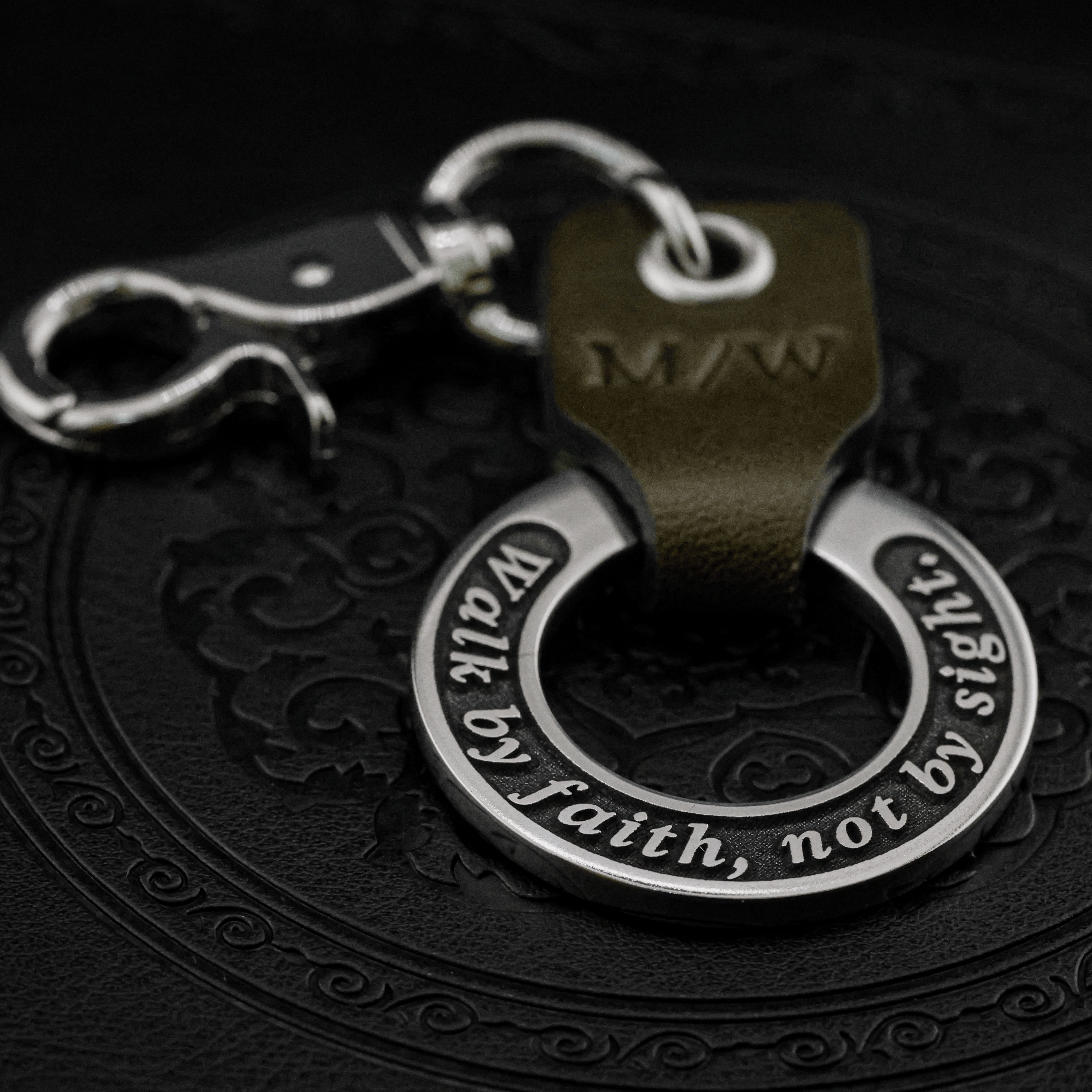 Engraved Stainless Steel & Leather Keychain β Christian Gift for Him